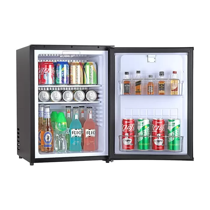 The fridge uses a stylish plastic door panel, which is anti-fingerprint and stain-resistant, lighter and more durable. Compared with glass doors, it is safer and suitable for high-frequency hotel rooms. The internal shelves can be flexibly adjusted to optimize storage space and easily store various drinks.