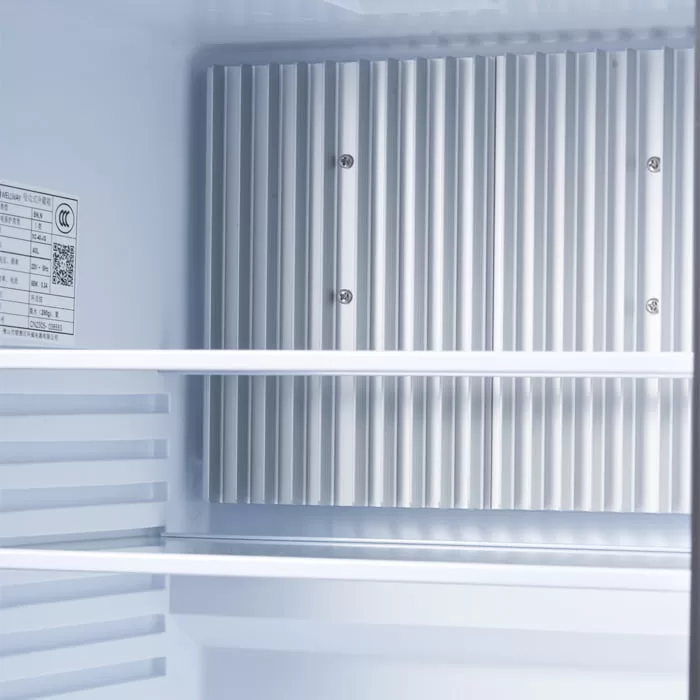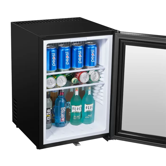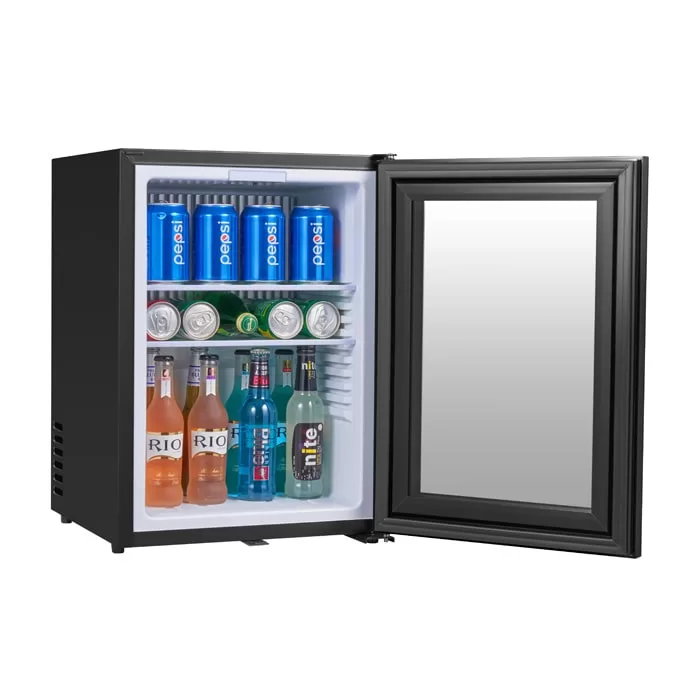 The fridge uses absorption refrigeration or heat pipe refrigeration technology, has a compressor-free design, and is almost noiseless during operation, ensuring that guests are quiet and undisturbed at night and improving their stay experience. At the same time, its low energy consumption design can help hotels reduce long-term operating costs.